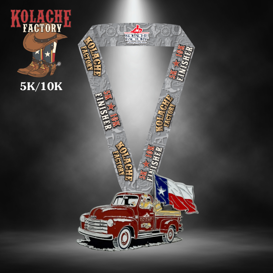 1. Custom Die-Cast Finishers Medal Featuring a Texas-Style Rusted Red Pickup Truck (w/ Texas Flag!)